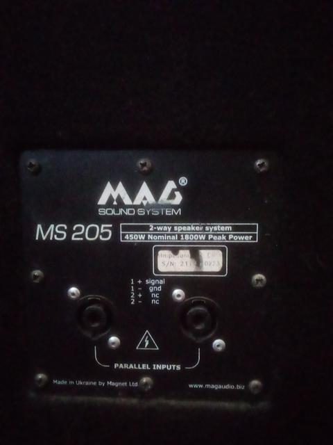 Акустичні системи Mag Ms 205 пасивні, все в оригіналі. Все грає все співає. Критичних пошкоджень немає, в деяких місцях є пошкодження войлоку. Продаж у зв'язку з припиненням користування. Вартість 30 тисяч за пару.