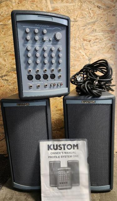 Система Kustom Profile System One – цеПортативна система гучномовців потужністю 100 Вт (4 Ом при коефіцієнті гармонійних спотворень 10%) з 5-канальним активним мікшером та двома лінійно-масивними динаміками, ідеально підходить для невеликих майданчиків. Ключові характеристики включають 24-бітні DSP-ефекти, фантомне живлення (+15 В) та 3-смуговий майстер-еквалайзер. Система має чотири XLR/лінійні входи та один спеціальний інструментальний/лінійний вхід.