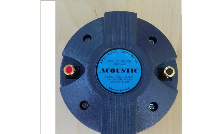 Драйвер Acoustic MHD-134,потужність 30Вт,полоса частот 1600-18000Гц,чутливість 107Дб,діаметр котушки 34мм,діаметр вихода 25мм.Вартість 1700грн(пара),тел.067-383-43-15,095-090-9015.