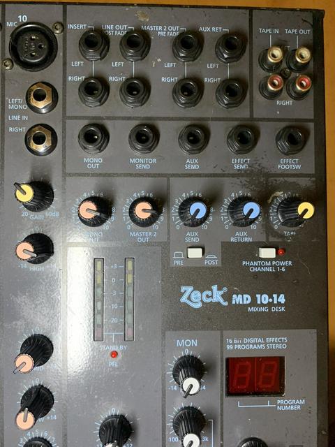 Продам мікшерний пасивний пульт Zeck md 10-14. Пульт привезений з Європи. Технічно без проблем. Візуально так як на фото. Виробництво Німечина. Пульт звучить на правду чудово. Має просто шикарні ревера. 4 пресети на ревера які запамятовує. Пиле захистні фейдера. Параметрика що дуже зручно. Тай взагалі багато можливостей підключки а головне чудесний звук який до теперішніх аналогів не зрівняєш. Кому важливий звук а не вигляд то запрошую на прослуховування. Ціна 380$+розумний торг.
