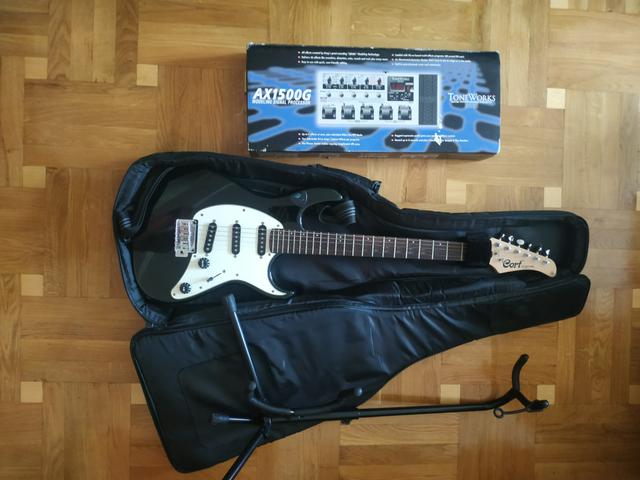 Електрогітара Cort з якісним мягким чохлом та стійкою.